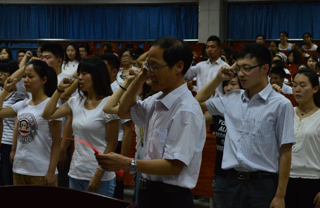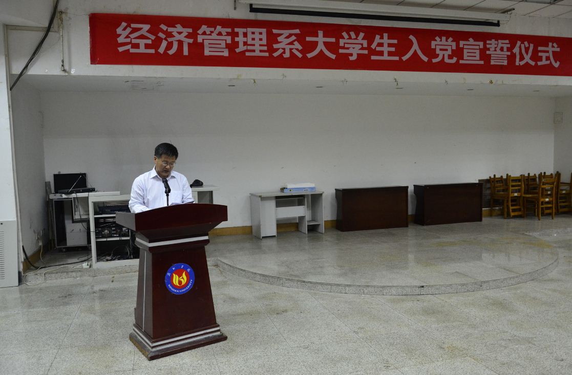 宣誓仪式在庄严肃穆的国际歌中正式启动。系党总支副书记于文湖带领2013年下半年发展的31名预备党员面对党旗庄严宣誓,20余名正式党员重温了入党誓词。随后刘璇作为宣誓党员代表承诺在今后的人生中,忠于国家和人民,不断提升自己的本领,全心全意为人民服务,为实现共产主义而奋斗终生。最后系党总支书记贾书记做了重要讲话。他代表经济管理系党总支对新加入党组织的31名师生表示衷心的祝贺。贾书记从端正入党动机、如何为人民服务、怎样发挥模范带头作用等方面对全体党员和入党积极分子代表进行了深刻的教育,对他们今后的工作、学习和生活提出了四点要求,希望大家对得起“共产党员”这庄严神圣的称呼,时刻严格要求自己,积极进取,为实现中国梦贡献自己的力量!