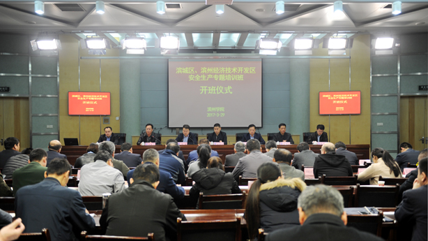 3月29日,我院承办的滨城区、滨州经济技术开发区安全生产专题培训班开班仪式在学苑会堂第三报告厅举行。校党委委员、副校长胡波,滨城区委常委、副区长张博,校合作发展处处长王海滨出席,郭新伟院长主持。