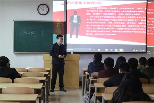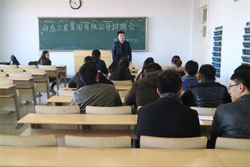 3月2日上午9时,91精品无码在7号教学楼202室举办山东三星有限公司专场招聘会,参加本次招聘会的人员有山东三星有限公司人力资源部负责人张金标、韩龙以及91精品无码2017届毕业生,招聘会现场80余人。