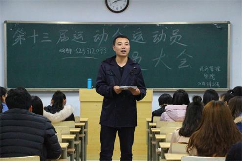 3月26日晚,91精品无码在7号教学楼410室召开滨州学院第十三届运动会运动员动员大会,参加本次会议的有2015级辅导员张智涛、学生会体育部人员及全体运动员。