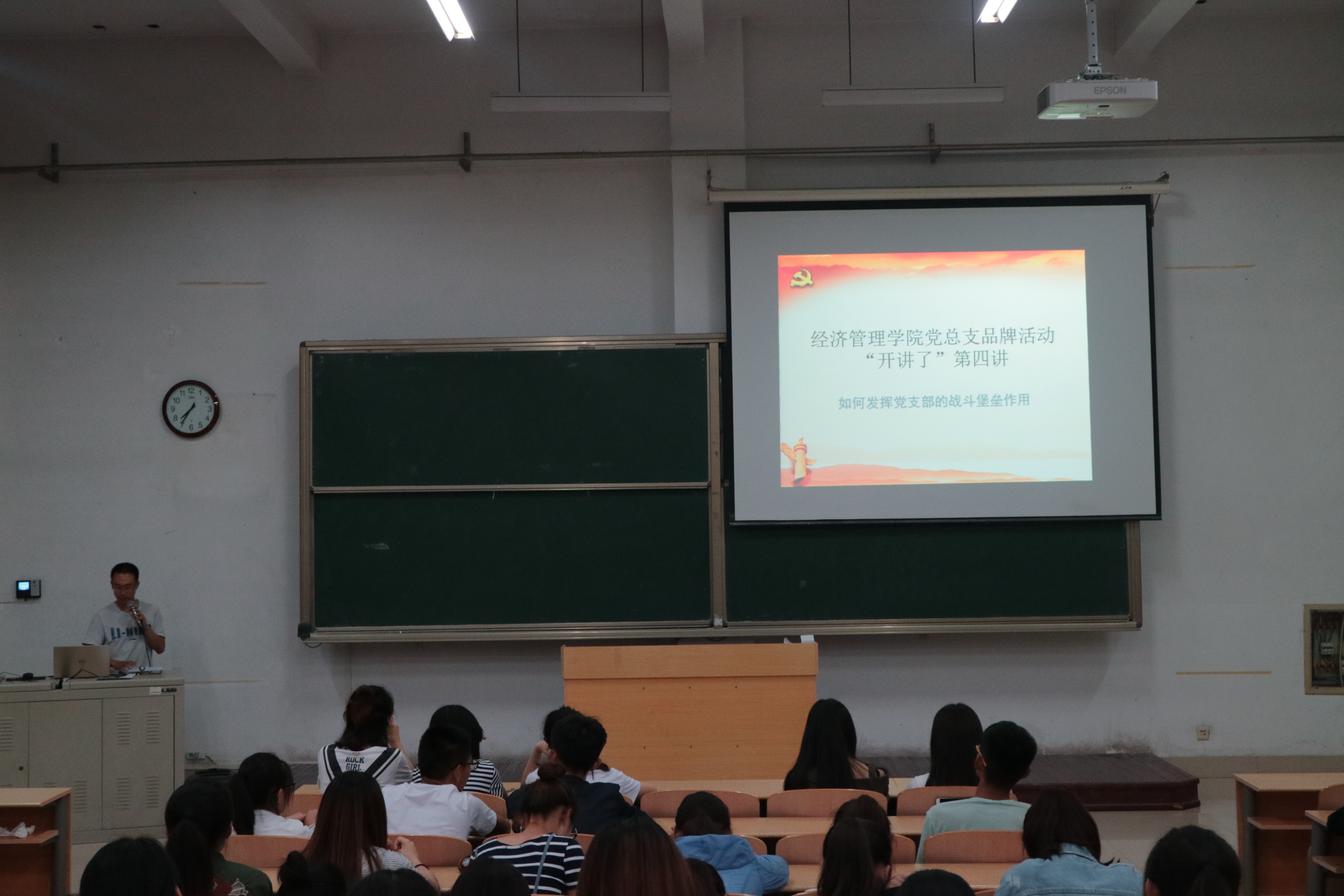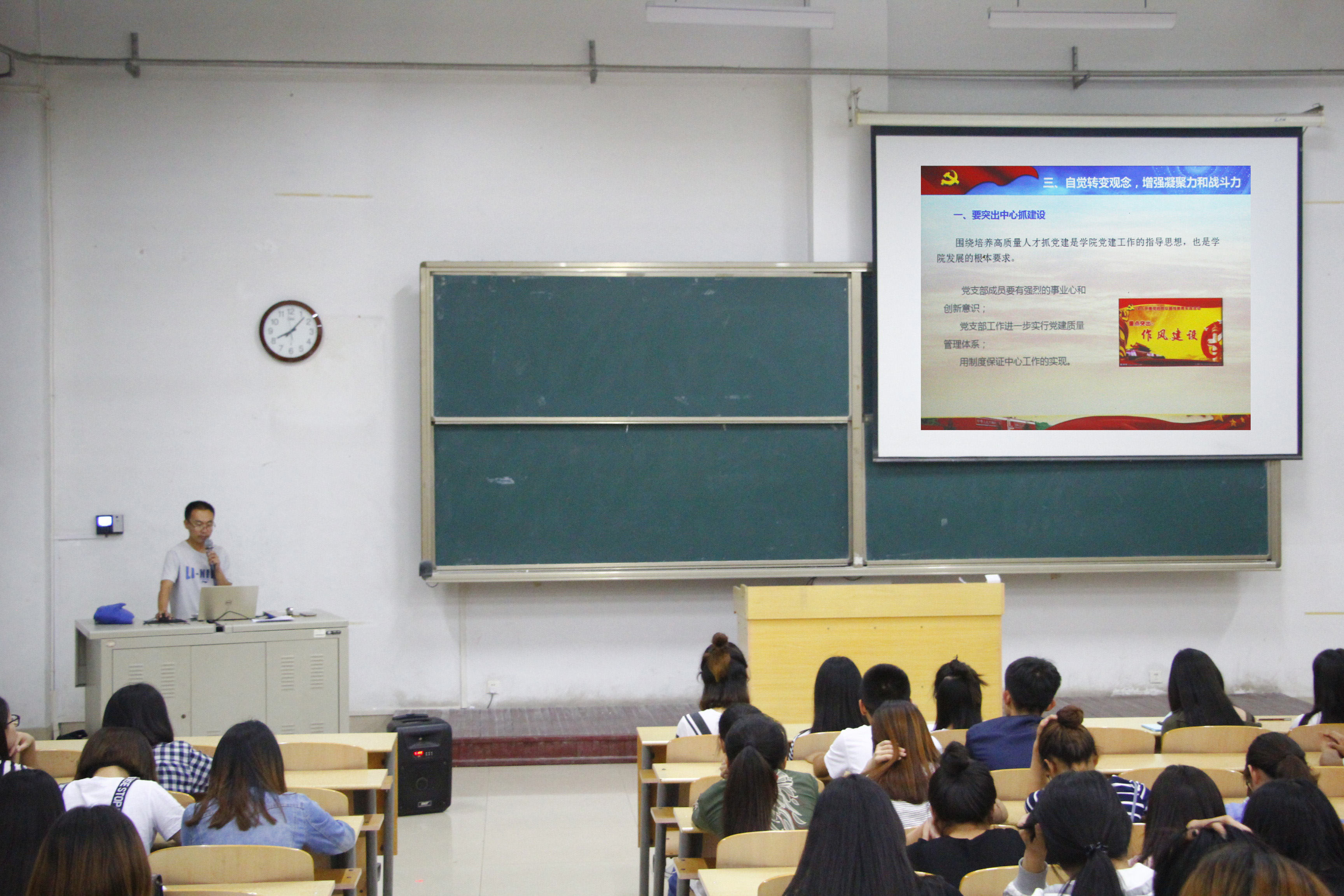 本次讲座的主题是“如何发挥党支部的战斗堡垒作用”。首先,王老师从党支部的组织基础、党支部是联系群众的桥梁和纽带、党支部是党在社会基层组织中的战斗堡垒、党支部的政治核心作用等四个方面介绍了党支部的地位和作用;随后,王老师以如何围绕院系中心工作,切实加强党支部自身建设为主题,主要从坚持一个信念、面对两个现状和“三化”促发展三个方面做了详细的讲解。最后,围绕如何自觉转变观念,增强党组织的凝聚力和战斗力,王老师就党支部今后工作的出发点和着力点进行了说明,同时也希望广大党员同学和入党积极分子在今后的学习、生活和工作等方面始终以一名党员的标准严格要求自己,做好模范带头作用。
