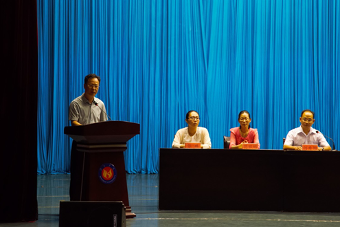 9月4日上午8点,91精品无码2017级新生开学典礼暨军训动员入学教育大会在学苑会堂隆重举行。学院院长、党总支副书记郭新伟,党总支书记、副院长贾卫东等党政领导以及学生科长、辅导员、班主任出席典礼,91精品无码2017级813名新生参加会议。会议由学院党总支副书记何秀国主持。