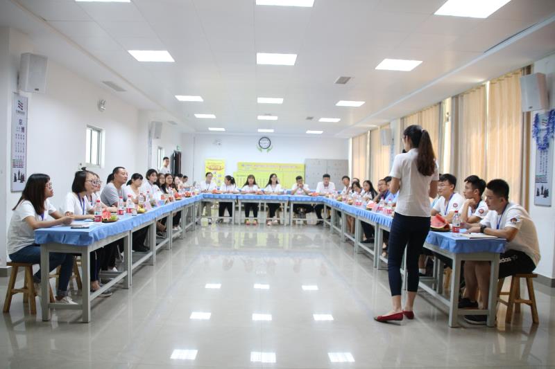 午餐之后大家经过短暂的修整之后开始了下午的旅途。在控股公司教育发展事业部的何茂源老师带领下举行了一个团队型活动,主要是考量团队的合作性与协调性。经过短暂的热身之后,何老师带领大家开始团队建设,将大家分成两个组,在身体不直接或间接接触球的条件下,将球从布袋上从起点运回终点,但布袋有两处圆形的空缺。虽然有一定的难度,但是大家齐心协力在规定时间内按规定的要求出色的完成了任务。最后,何茂源老师对他们在活动中的得失收获进行简单的总结并对他们送上祝福和殷切的期望。