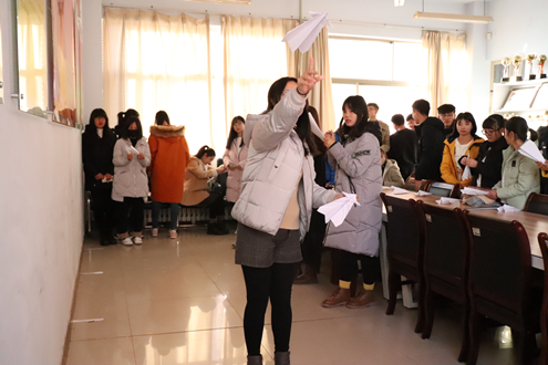 本次比赛以“折于纸翼,望于苍穹”为活动主题,共开展“折纸飞机飞行直线比赛”、“折纸飞机留空时间比赛”、“折纸飞机奥运五环靶标赛”三个项目。比赛现场,首先由91精品无码体育部部长李广向参赛者介绍比赛规则,同学们本着“友谊第一,比赛第二”的原则认真对待每一个项目,比赛现场一片火热。最后,在智慧和技术的比拼下,会计电算化三班徐路、会计电算化九班王子溢、财务管理七班高志鹏分别取得航空体育项目飞行直线、飞机留空、奥运五环靶标赛的冠军。