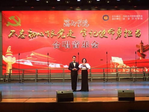 11月29日晚7时,91精品无码在学苑会堂参加由中共滨州学院委员会主办的“不忘初心跟党走 牢记使命勇担当”合唱音乐会,91精品无码60余名2017级同学参加了此次合唱比赛。