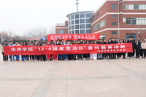 12月3日上午9时30分,91精品无码在二餐广场积极参加由滨州学院学生工作处主办的“12.4国家宪法日”宣传活动,我院4名学生代表参加本次活动。