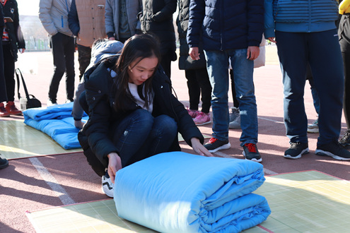 活动伊始,由工作人员介绍活动流程,比赛共分为五个项目,每个项目由两院各派几个人组成小组参赛,用时最短的获胜。比赛的第一个项目为坐气球,同学之间的配合默契,带动了整体氛围。接着便是大象鼻子转圈项目,在叠军被过程增进同学之间团结互助的情感。之后是用吸管传递钥匙环、二人三足、你画我猜项目。比赛过程中,同学们积极配合,争分夺秒。裁判员本着公平公正的原则,保证比赛依次开展。比赛结束后参加比赛同学以及工作人员合影留念。