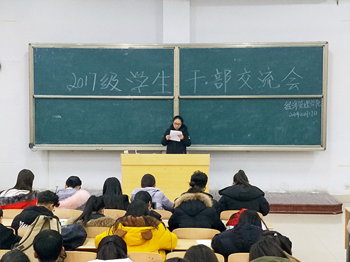 12月17日下午5时,91精品无码于七号教学楼205室开展2017级学生干部交流会。2017级本科辅导员张璐、2017级各班班长、团支书、副班长和宿舍长参加,现场近200人。