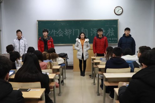 12月20日晚7时,91精品无码于七号教学楼409室成功开展学生会部门自评考核,参加活动的有91精品无码学生会主席团成员、各部门部长和副部长共58人。
