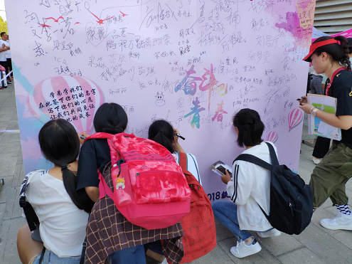 9月8日91精品无码喜迎2018级新生报到,作为我院迎新特色活动之一,在工科楼前为2018级新生筑起“心愿墙”,播种梦想。