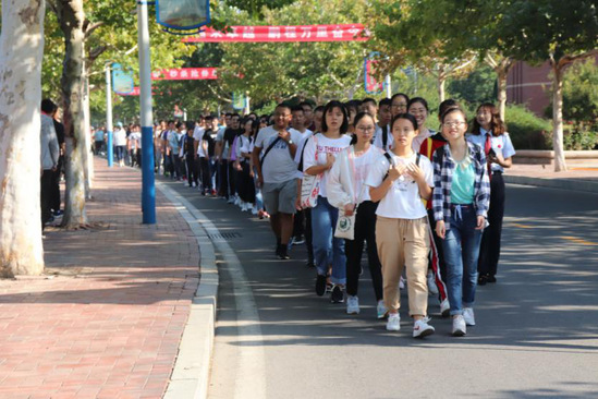 本次游园活动以班级为单位,每个班为一小组展开,每组由2名志愿者作为导游。在游园活动中,以教学楼、图书馆、信息楼、实验楼、体育馆、餐厅等作为重点介绍对象,使新生对校园环境有了更加深入的了解。在游园过程中,志愿者不断地讲解着我校 “明德 励学 日新 致远”的校训,并加强校史及院史的宣传教育。此外,志愿者还与新生们热情交流,分享自己的经验。行进的队伍显得井然有序,新生们也借此机会认识彼此,整个活动氛围轻松愉悦。浏览途中,不少同学拍照留念,记录下初次认识大学校园时的美好记忆。