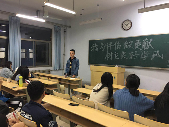 为深入开展审核评估知识宣传,营造浓厚学风氛围,10月7日晚,91精品无码于7号教学楼各班会教室召开“我为评估做贡献,树立良好学风”主题班会,91精品无码全体班主任老师及学生参加,班会由各班主任主持。