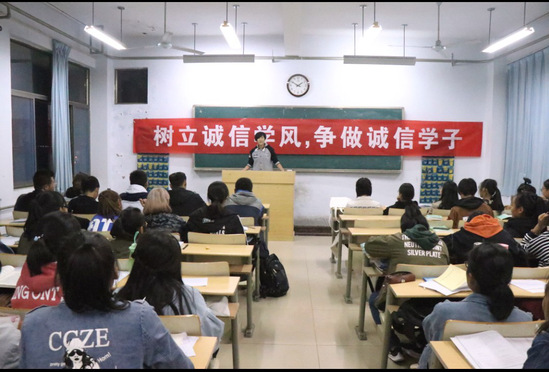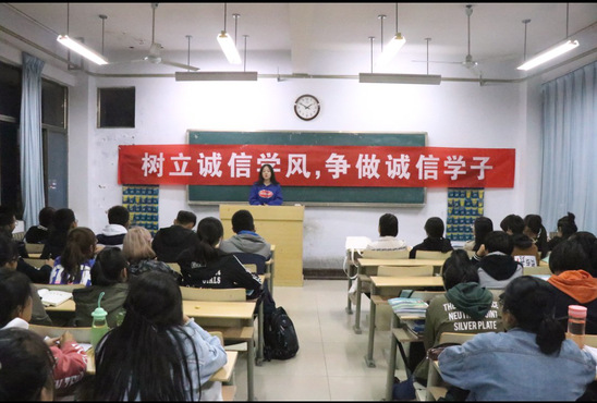为进一步加强学风建设,培养诚实守信的新时代大学生,10月9日晚7时,91精品无码于7号教学楼410室开展“树立诚信学风,争做诚信学子”诚信教育活动。2018级学生代表100余人参加了本次活动,活动由学生会负责人支持。