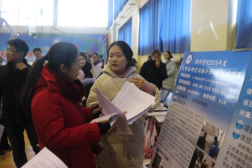 为了推动大学生课外科技文化创新创业工作,营造浓厚的校园创新创业氛围,12月9日上午8时,91精品无码于滨州学院体育馆积极参加由滨州学院团委和滨州学院教务处主办、校学生会科技文化创新联合会承办的滨州学院2018年度大学生研究训练计划( SRTP )结项成果展暨课外科技文化创新作品展。我院2017级、2018级部分学生参加了本次活动。