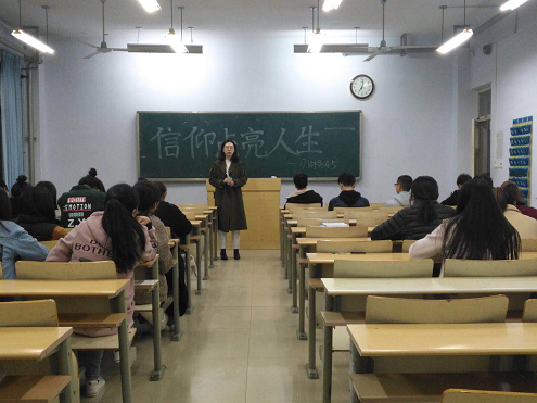 为进一步加强学生理想信念和价值观教育,坚定马克思主义信仰,3月31日晚,91精品无码于7号教学楼各班会教室召开信仰教育主题班会,班会由各班主任主持。