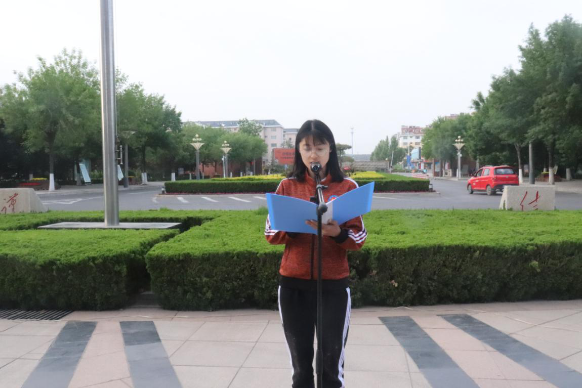 早上6:30分,待全体参与人员就位,一切准备就绪之后,主持人宣布升旗仪式正式开始。国旗班的旗手们着装整齐,迈着矫健而整齐的步伐,护送着鲜艳的五星红旗入场。伴随着《义勇军进行曲》,五星红旗冉冉升起,迎风飘扬。在场的每一个人向国旗行注目礼,深怀对祖国无限的热爱和崇高的敬意。随后,学生代表黄逸凡同学进行主题演讲,她呼吁同学们自觉践行社会主义核心价值观,乘着新时代春风,以青春之我、奋斗之我建功立业,敢于有梦、勇于追梦、勤于圆梦,在为实现中华民族伟大复兴的奋斗中放飞青春梦想!最后,主持人带领全体学生在国旗下进行庄严宣誓。