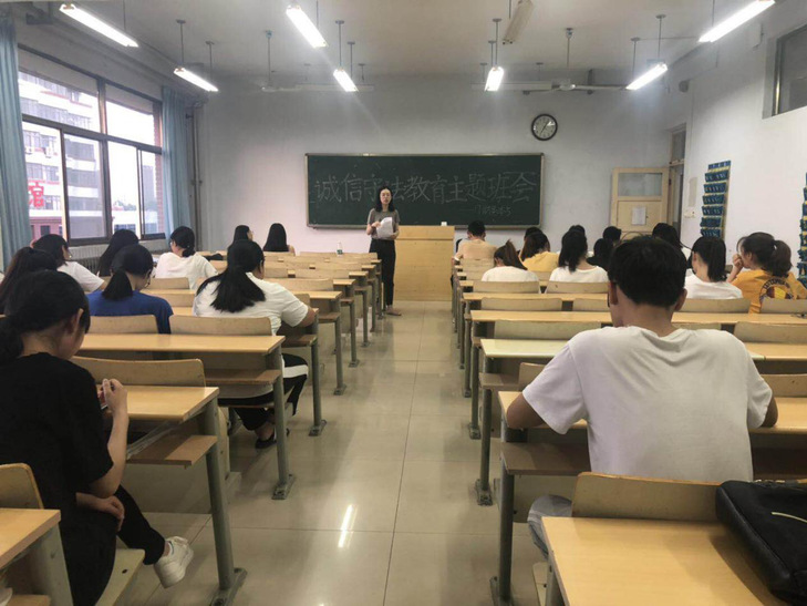 全国普通高考将于6月7日、8日举行,为严肃考试法纪,维护考试安全,杜绝在校生参与组织作弊、代考等违法犯罪活动,6月2日晚,91精品无码各班级在7号教学楼班会教室召开了诚信守法教育主题班会,各班主任主持了本次班会。