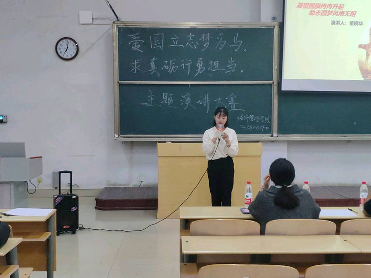 比赛中,11位选手紧紧围绕主题,慷慨激昂,各抒己见,由自身经历到家国情怀,由社会现象到事件本质,从不同的角度透露着对家庭的责任,对国家的担当,对生命的思考,对未来的渴望。各位参赛选手抒发了报国之志、爱国之情,展现了作为年轻学子的使命担当。比赛过程富有感染力和吸引力,气氛热烈,掌声不断。最后,张智涛老师从台风、衣着、语音语调等方面就选手们的表现做出综合评价,指出选手们的改进之处,并强调演讲不是熟练地背诵而是讲出心声。经过激烈角逐,共有6位选手进入决赛。