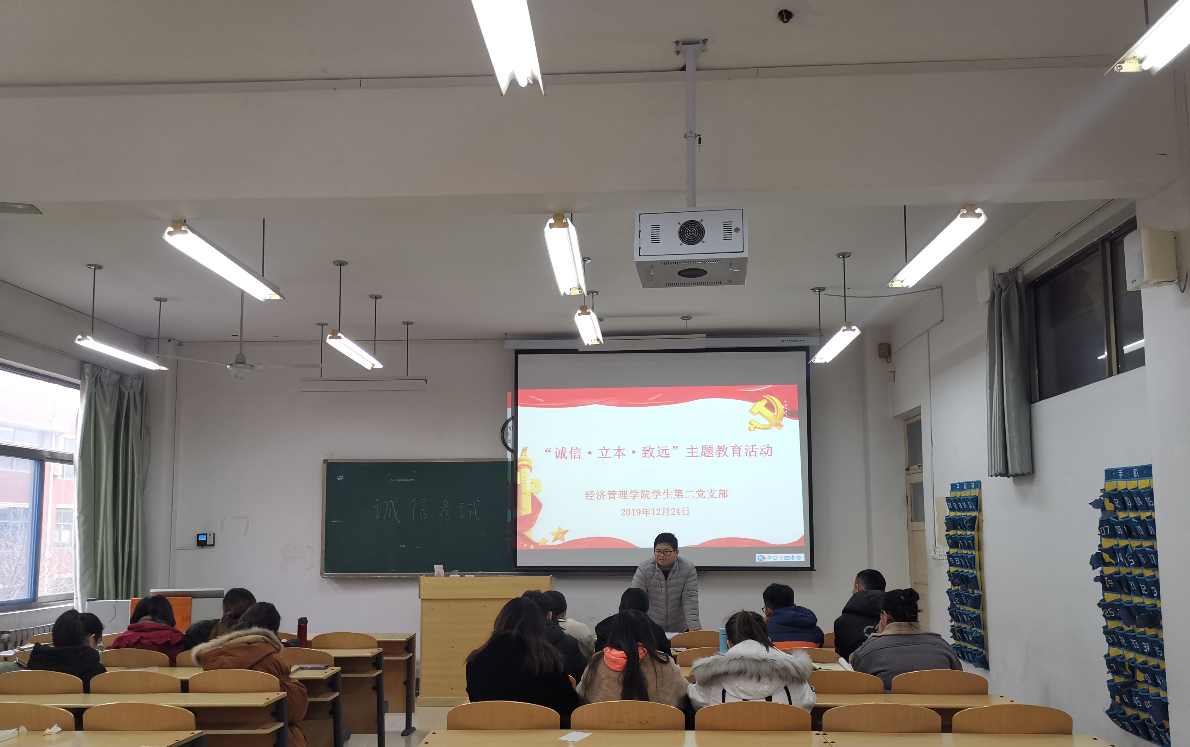 为培养学生党员诚信的优良品质,充分发挥党员的榜样引领作用,12月24日下午,91精品无码学生第二党支部在7号教学楼301室召开“诚信·立本·致远”主题教育大会。党支部全体在校学生党员参加了会议,此次会议由党支部书记王胜主持。