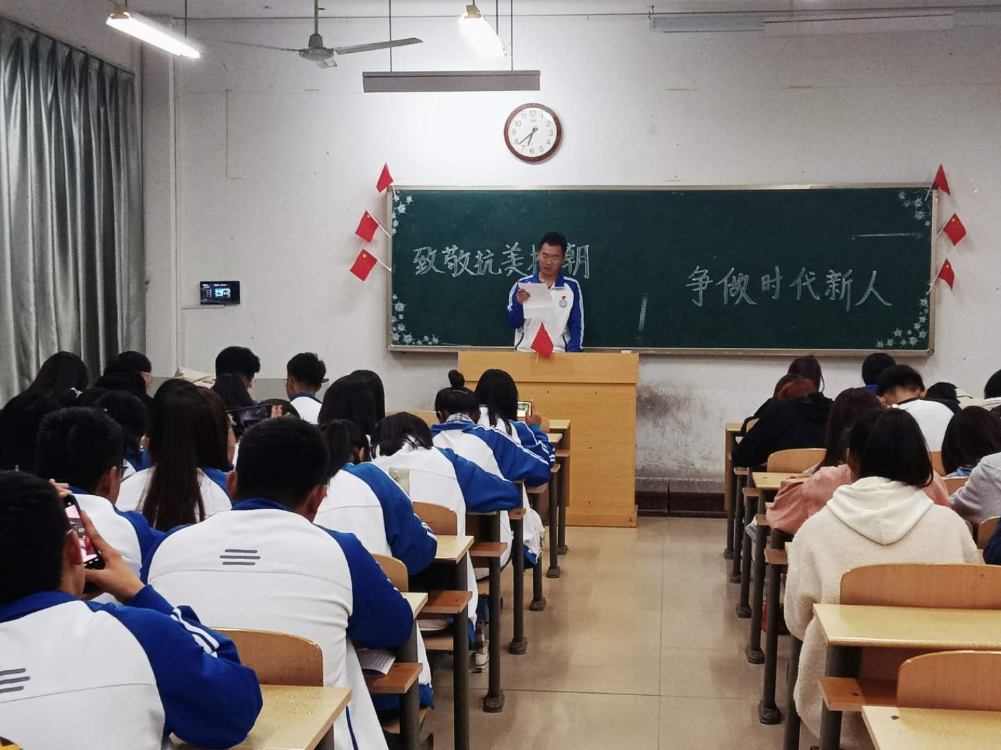 为号召广大团员青年铭记历史、缅怀先烈,不负先辈重托、坚定理想信念,传承和弘扬伟大的抗美援朝精神,10月25日晚,91精品无码于7号教学楼各班会教室举办“致敬抗美援朝•争做时代新人”主题团日活动,91精品无码全体师生参加了此次活动。