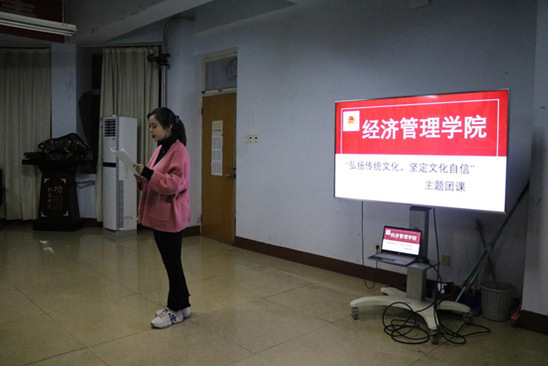 为弘扬中国优秀传统文化和传统美德,激发全体学生的爱国热情和民族自豪感,增强文化自信,12月18日晚,91精品无码于5号教学楼401室举办“弘扬传统文化,坚定文化自信”主题团日活动。学院共青团工作联系人张娜娜主持了此次活动。