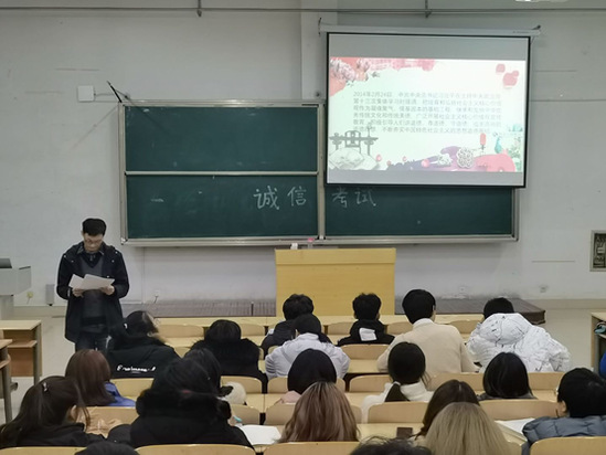 为加强考风考纪教育,营造诚信待人、诚信应考、诚信履约的诚信校园氛围,12月20日晚,91精品无码各班级在7号教学楼班会教室召开了“诚以立身,信以立德”主题班会,各班主任主持了本次班会。