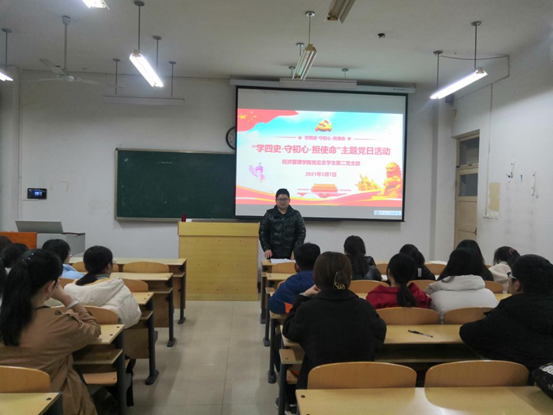 为深入学习贯彻落实习近平总书记关于党史、新中国史、改革开放史、社会主义发展史(简称“四史”)学习的重要讲话和指示精神,进一步深化我院学生党员对初心使命的理解和认识,3月7日晚,91精品无码学生第二党支部开展了“学四史·守初心·担使命”主题党日活动。支部全体党员参与了本次活动,活动由党支部书记王胜主持。
