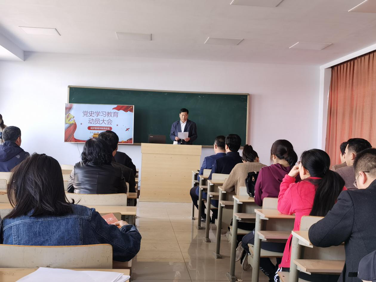 动员会上,党总支书记崔玉海向全体教工党员传达学习了刘春华书记在学校党史学习教育动员大会上的讲话精神,并对学院开展党史学习教育进行了动员部署。党总支副书记何秀国领学了《中共滨州学院委员会关于开展党史学习教育的实施方案》。会议指出,在庆祝中国共产党百年华诞的重大时刻,在“两个一百年”奋斗目标历史交汇的关键节点,在全党集中开展党史学习教育意义重大,是牢记初心使命、推进中华民族伟大复兴历史伟业的必然要求,是坚定信仰信念、在新时代坚持和发展中国特色社会主义的必然要求,是推进党的自我革命、永葆党的生机活力的必然要求。学院开展党史学习教育,要按照上级党组织部署要求,把“学史明理、学史增信、学史崇德、学史力行”目标贯穿始终,做到“学党史、悟思想、办实事、开新局”,增强“四个意识”、坚定“四个自信”、做到“两个维护”,不断提高政治判断力、政治领悟力、政治执行力。