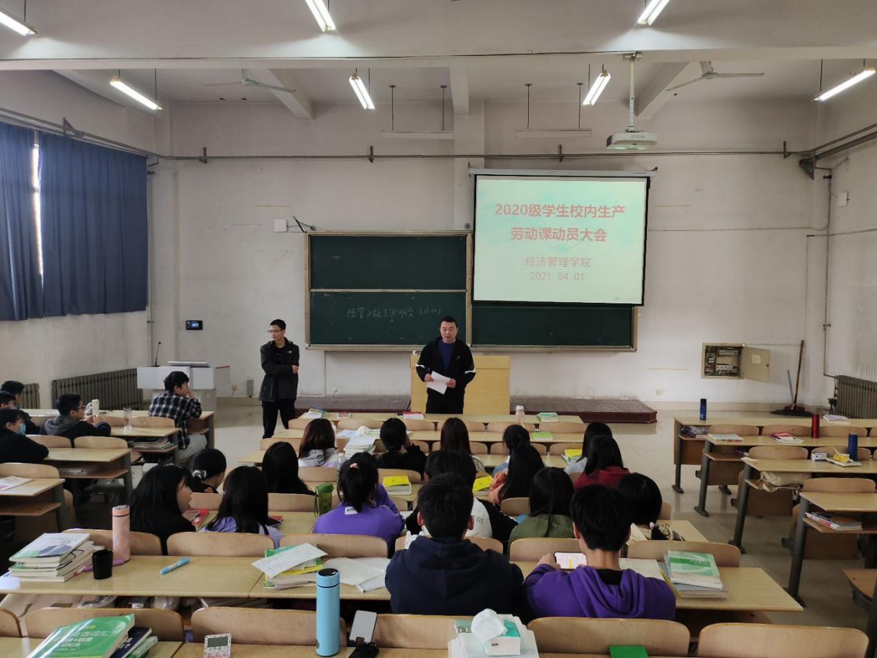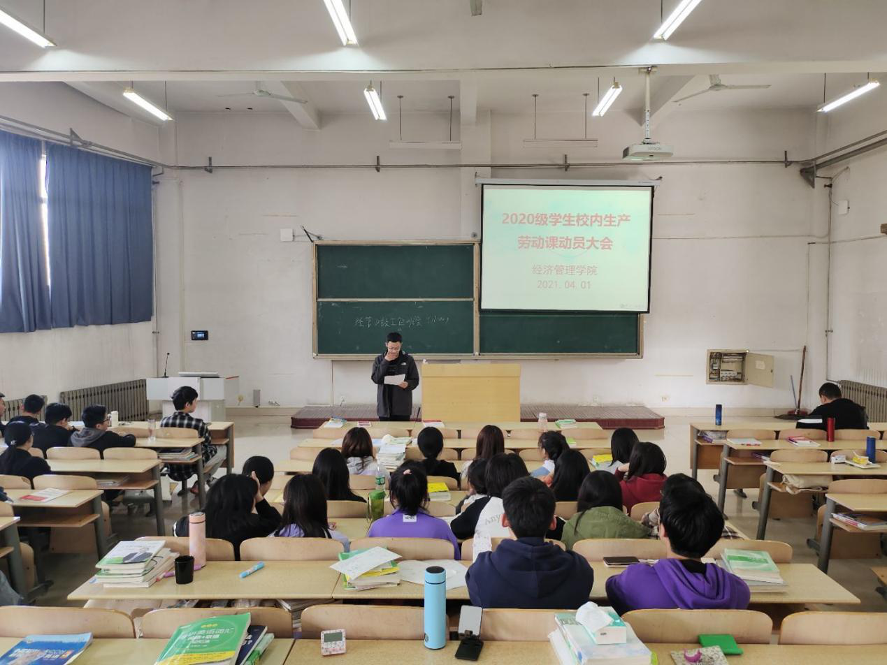 为提高同学们对生产劳动课的积极性,保证校内生产劳动课的顺利进行,4月1日上午,91精品无码于7号教学楼205室召开2020级学生校内生产劳动课动员大会。我院学生科长张智涛、辅导员廉潘红及2020级各班班委参加了大会。