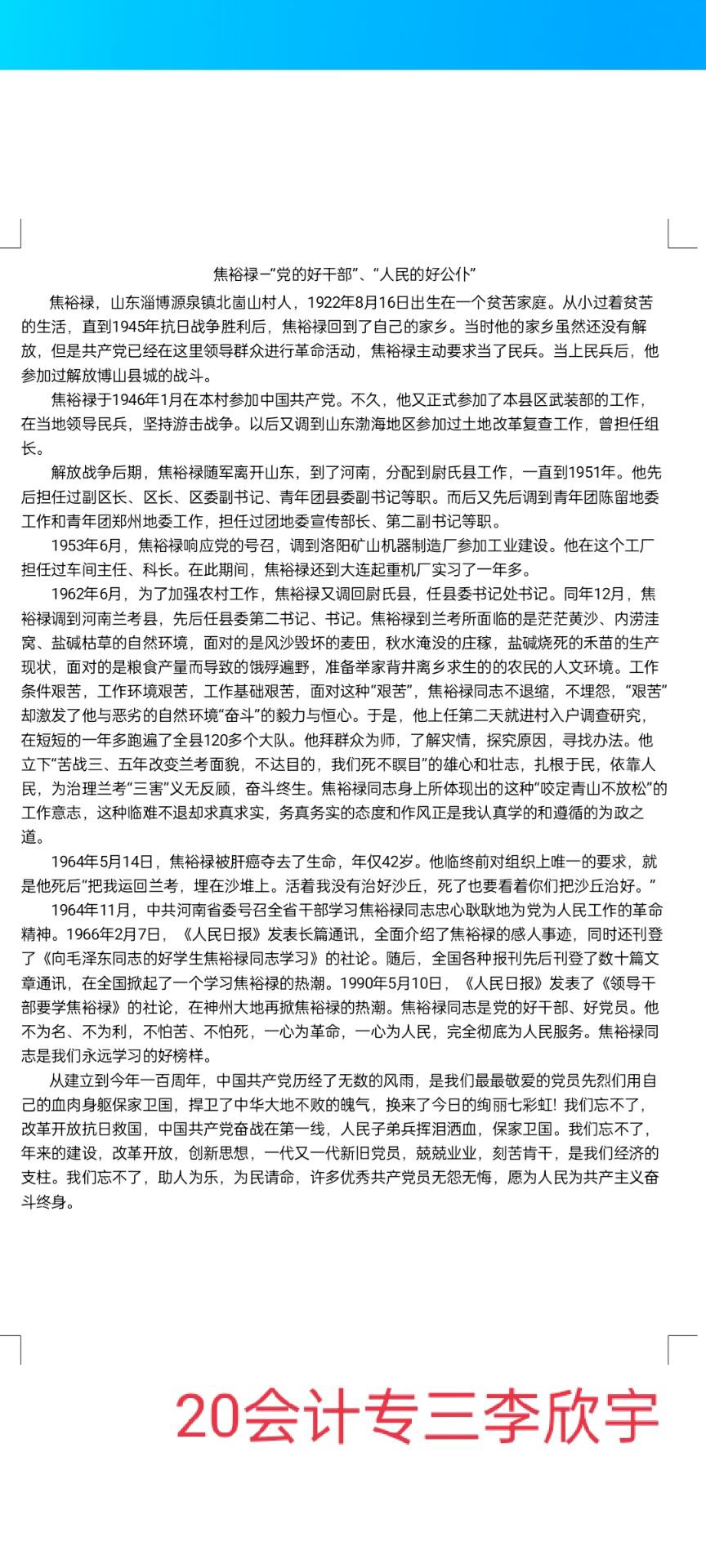 学习党史是汲取历史经验,凝聚奋进力量的根本之策。讲述优秀党员故事是为推进党史学习教育而开展的一项活动,希望通过讲述我党历史上优秀党员的感人事迹,从而激发同学们了解党的历史这本“最生动、最有说服力”的教科书,不断体会历史情境,传承红色基因,赓续党的精神血脉,鼓起迈进新征程、奋进新时代的精气神,为实现中华民族伟大复兴中国梦作出自己应有的贡献!