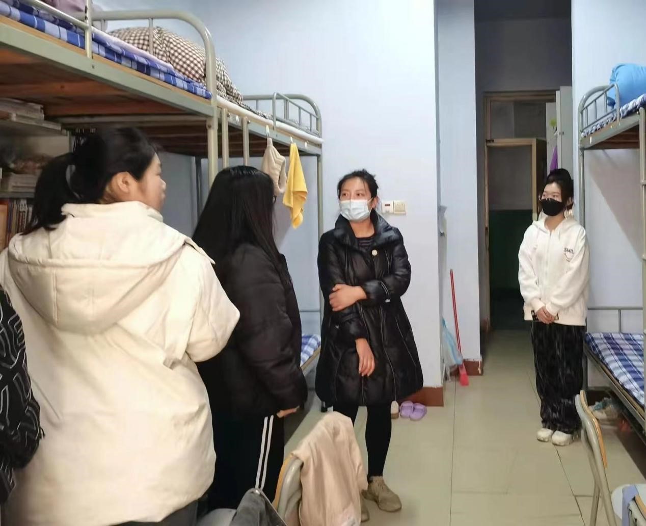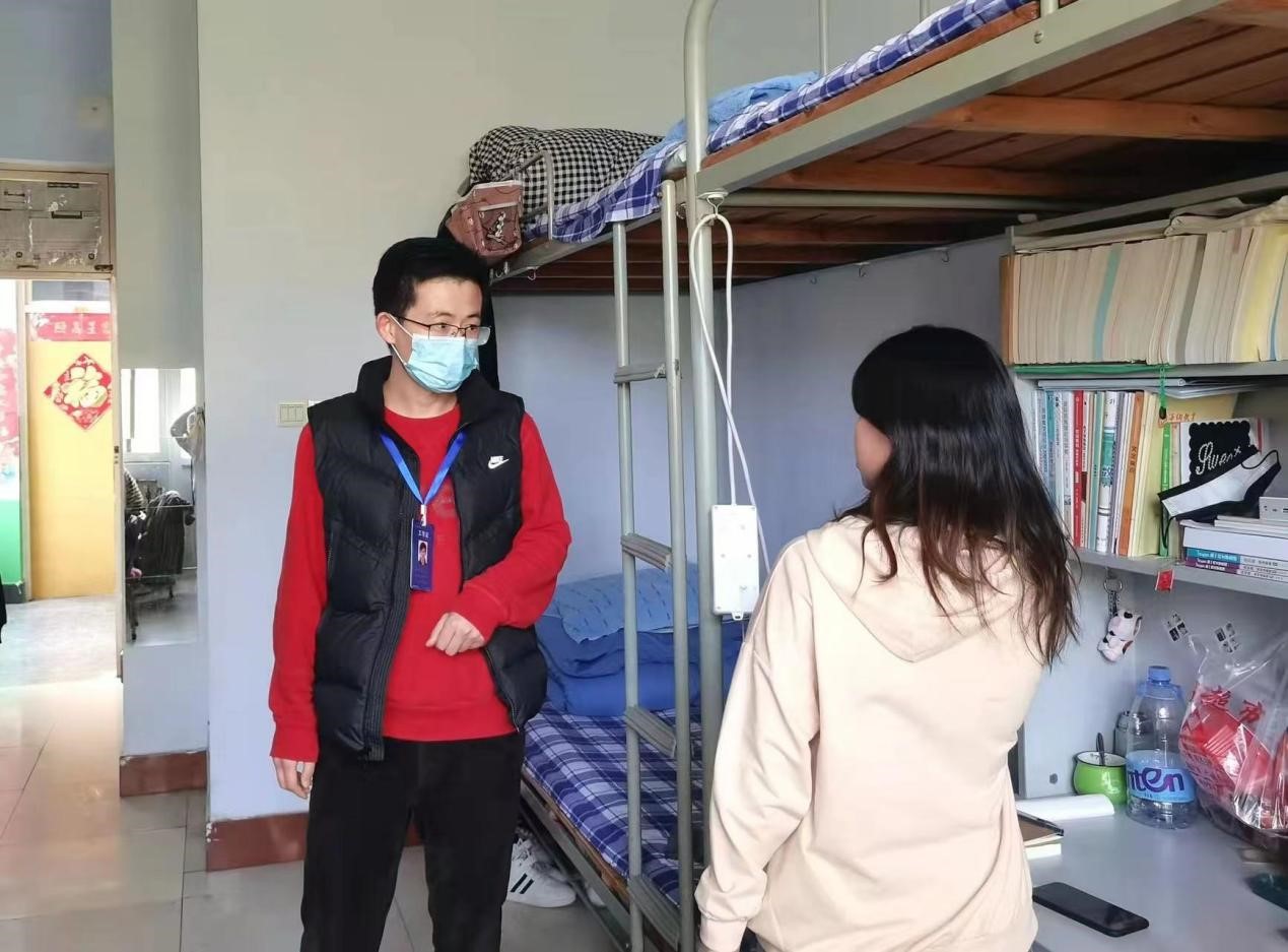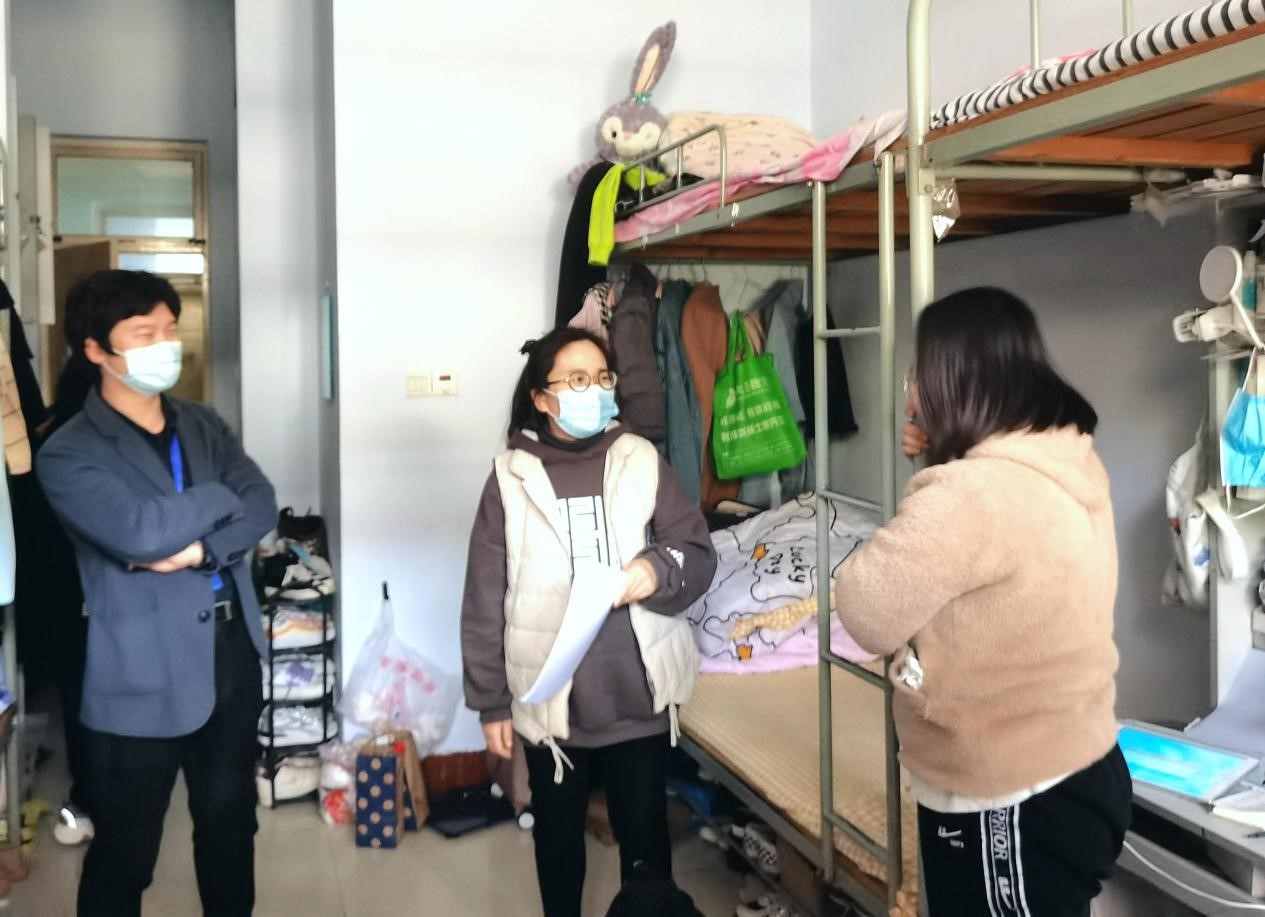 疫情防控期间,根据校园封闭管理的相关要求,学生们的“云学习”已经开展了两周多的时间。为进一步做好疫情防控工作,继续强化学生日常生活管理,保证学校线上教学秩序正常有序,3月30日下午,91精品无码党总支副书记于峰带领所有住校辅导员老师检查学生住宿情况和宿舍安全隐患。