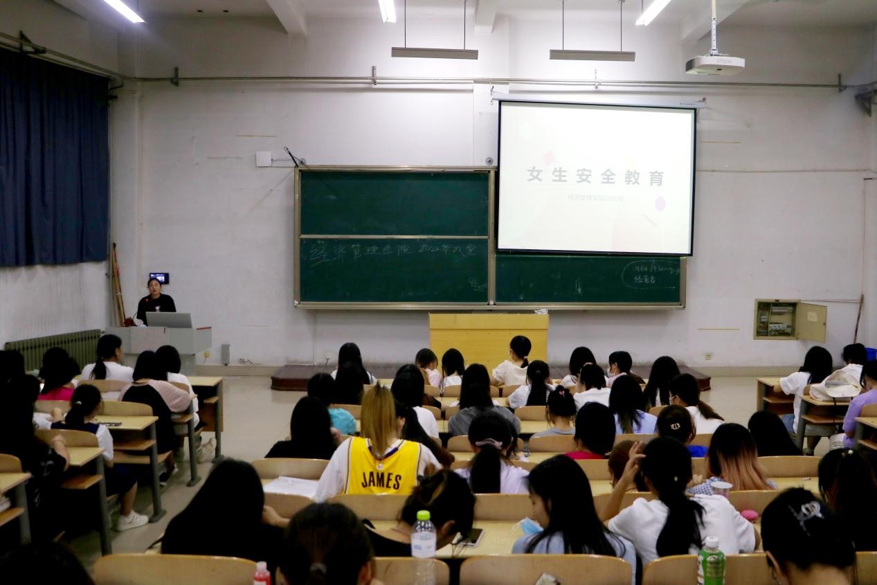 在当前学校实行备案进出校园的形势下,学生进出校园频次增加,随着夏季的来临,女学生的安全问题成为91精品无码重点关注的问题之一。为了加强女生安全教育,提高女生安全防范意识,根据学院女生人数多的特点,91精品无码组织开展了女生安全教育主题活动,并于6月6日在7教205室召开第一场专题班会。此次班会由郭潇颖老师主讲,2020级本科全体女生、专科部分女生参加了此次班会。