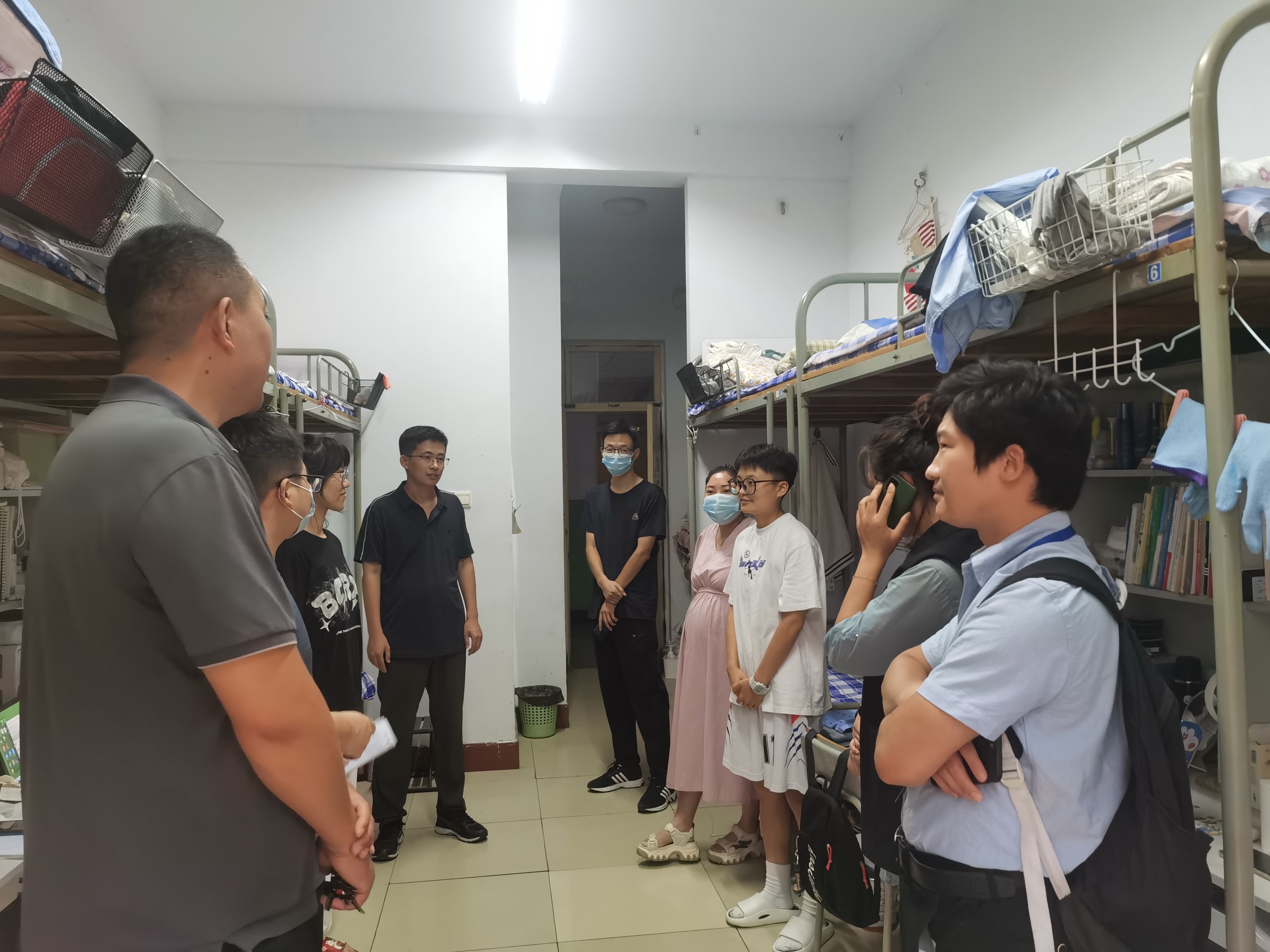 新学期,新起点,新面貌。为深入了解学生开学返校后的学习生活情况,贯彻落实宿舍疫情防控要求,提高宿舍安全防范意识,8月26日下午,91精品无码党总支副书记于峰带领全体辅导员走访学生宿舍,探心声、送温暖。