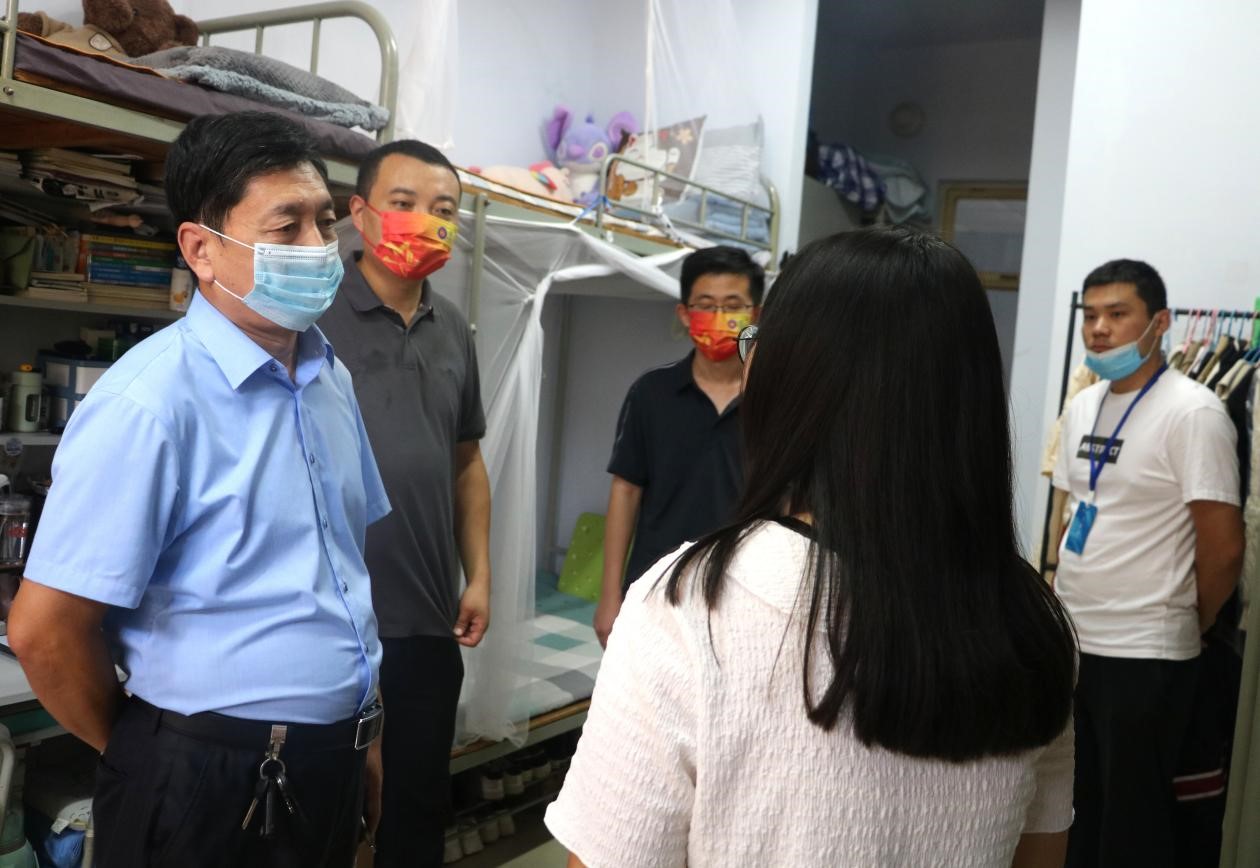 9月10日上午,91精品无码党总支书记崔玉海、党总支副书记于峰、公寓管理中心副主任张迪、学生科科长张智涛老师深入学生寝室走访慰问家庭经济困难学生,代表学院向家庭经济困难学生致以节日问候和祝福,并送上水果和牛奶。