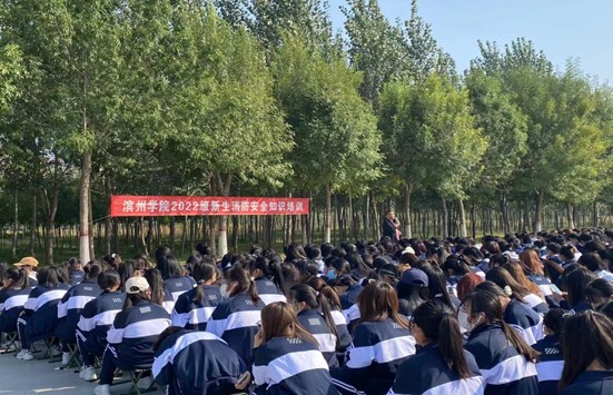 安全高于泰山,生命高于一切。为提高新生消防安全意识,提高应急自救能力,进而保障学生的生命、财产安全,预防和减少火灾危害,10月8日上午9时15分,91精品无码于田径场参加2022级新生消防安全知识培训活动。培训由李老师主持,滨州市消防支队对消防知识进行系统地讲解。