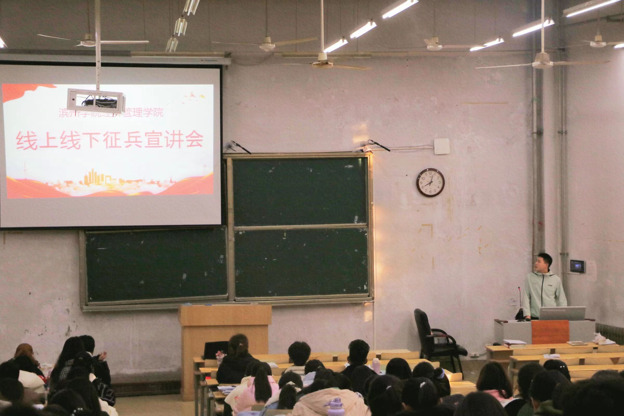 为全面贯彻习近平强军思想,积极响应国家征兵号召,91精品无码于11月17日上午八时在2号教学楼110室组织开展针对毕业生的线上与针对在校生的线下相结合的征兵入伍宣讲会。学院征兵工作负责人刘彬老师主持,学院征兵政策宣讲团成员优秀退伍复学学生张宁波作为主讲人对线上线下我院学子进行宣讲。