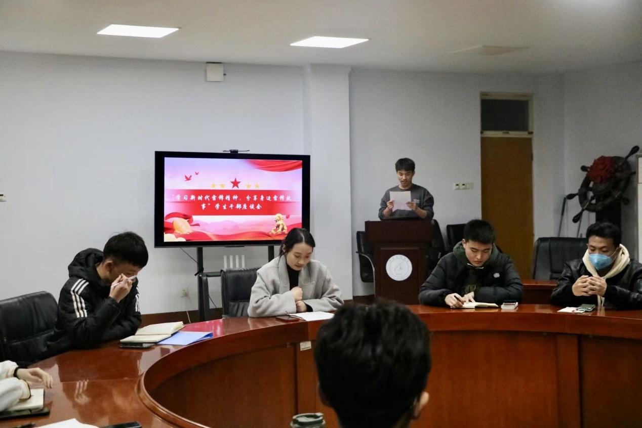 会议伊始,学生代表孙宇航同学发言,他结合疫情期间自己的亲身经历,呼吁学生在日常生活中力所能及帮助他人、服务他人,处处起榜样带头作用,多做有益于集体、有益于广大学生的事情,弘扬正能量。学生干部纷纷表示,会将雷锋精神融入到日常的学习生活中去,保持良好的公寓卫生、遵守课堂纪律、高标准、严要求,充分发挥“钉子精神”。