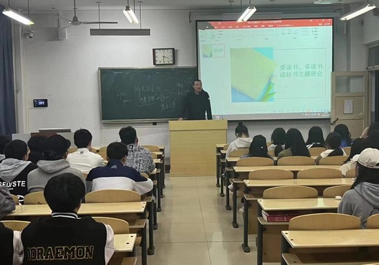 班会上,班主任首先强调了读书的重要性,点出了要有选择的读书以及如何读书等问题。他引用高尔基的名言——书籍是人类进步的阶梯,告诉学生书籍是人类宝贵的精神财富,是知识的源泉,引导学生学会阅读与享受阅读,并讲明了“爱读书、多读书、读好书”活动的规则以及奖励政策,鼓励学生结合专业要求与个人发展选择合适的书籍进行阅读,不断完善知识结构,扩大自我认知。