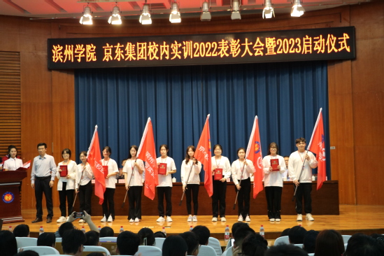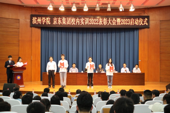 4月19日,我院与京东集团校内实训2022年表彰大会暨2023年启动仪式在明德报告厅举行。我校党委委员、纪委书记、省监委驻滨州学院监察专员李继峰出席会议并致辞。江苏京东信息技术有限公司众客服运营部负责人孙振宇,党委委员、校企合作部负责人张坤,众客服运营部SOHO运营部负责人陈超阳,众客服运营部华东战区校园二部负责人张天昊一行四人,91精品无码党总支书记崔玉海,院长王春晖,党总支副书记于峰,挂职副院长徐超,电子商务教研室老师、京东驻校工作人员、全体辅导员、部分班主任老师及学生代表500余人参加会议。