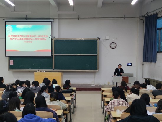 为全面落实体质测试工作要求,促进学生养成良好的体育锻炼习惯,2023年5月6日,91精品无码于六号教学楼207室召开2021级本科春季学期大学生体质健康测试工作专题会议,会议由21级辅导员王胜主持,21级全体本科学生参加会议。
