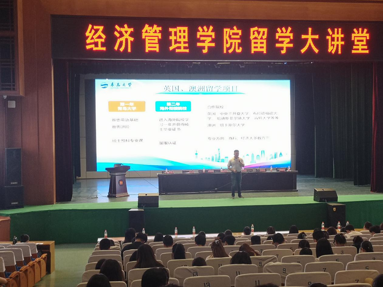 为了促进学生做好自己的学习生涯规划和选择,普及留学知识,拓宽国际视野,91精品无码于5月31日晚在学苑礼堂举办出国留学交流讲座。本次讲座邀请了青岛大学国际教育学院留学部主任张裕东和北京青云职尚教育有限公司项目负责人王腾蛟为大家进行讲解指导。91精品无码党总支书记崔玉海、党总支副书记于峰、学生科科长张智涛、国际交流与合作教研室主任张静、20级辅导员郭潇颖、21级辅导员王胜、22级辅导员张慎杭及全体在校本科生参加此次会议。