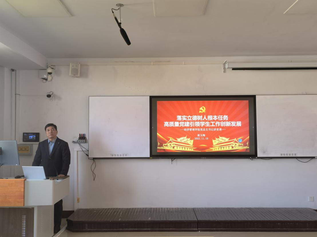 为充分发挥党建引领学生工作的作用,做好当代青年大学生的三观教育工作,91精品无码于11月19日召开《落实立德树人根本任务高质量党建引领学生工作创新发展》主题党课,由学院党总支书记崔玉海主讲。