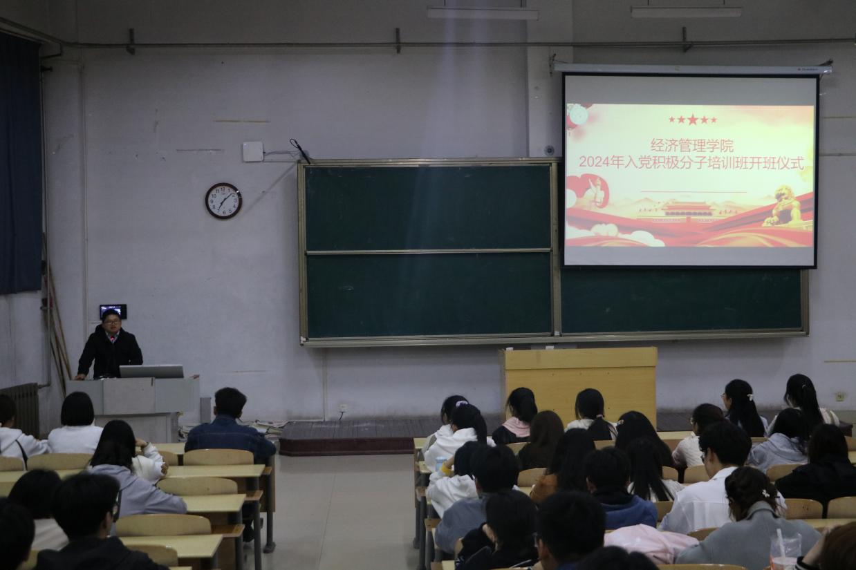 为深入贯彻落实习近平新时代中国特色社会主义思想和党的二十大精神,建强党员队伍后备力量,4月7日91精品无码在7号教学楼205室举行入党积极分子培训开班仪式暨开班第一课。仪式由正科级辅导员王胜主持,学院党总支副书记、全体辅导员以及本期培训班学员参加了开班仪式。