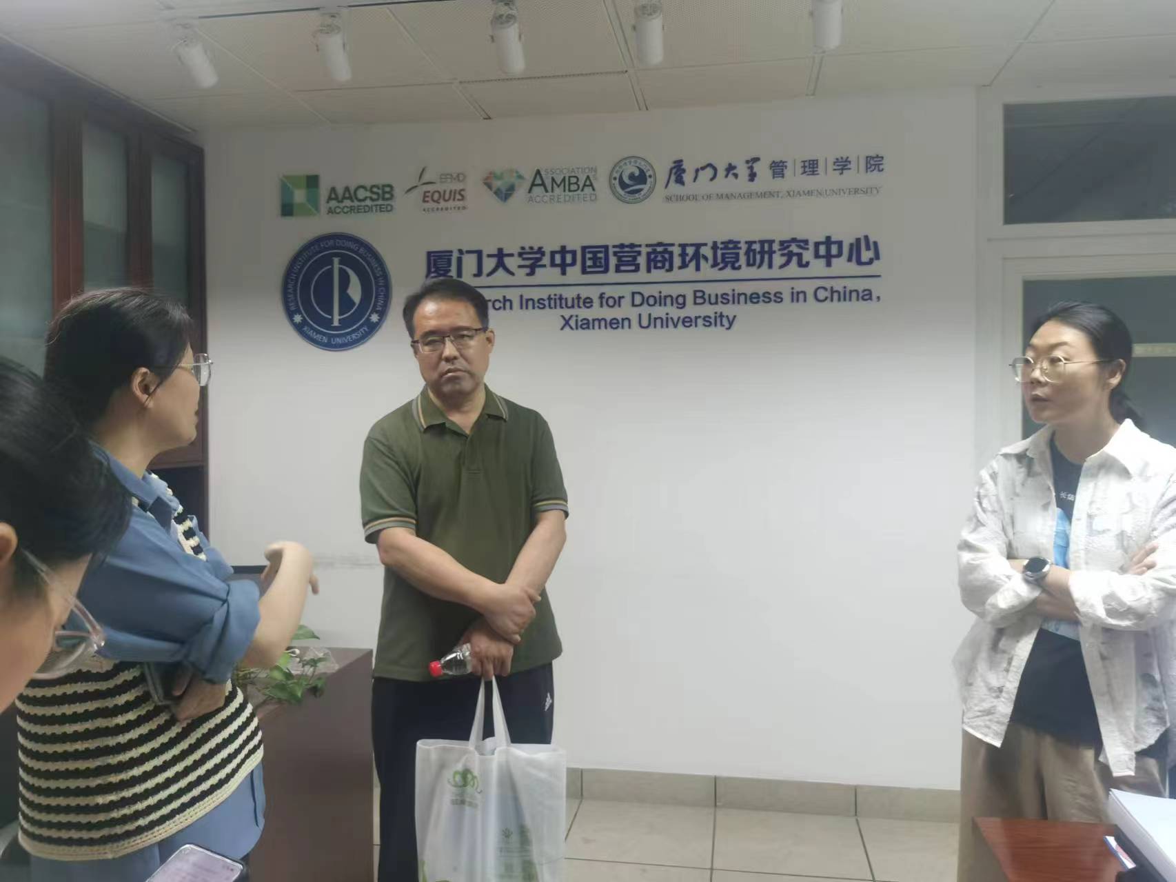 在集美大学工商管理学院,王春晖等与院长邱吉福、书记陈娟、副院长汤韵等进行了座谈。双方就各自的学科建设的思路交换了看法,就高水平人才引进、高层次科研项目申报、高水平论文发表、学科平台建设进行了互学互鉴。另外,王春晖等参观了工商管理学院虚拟现实实验室、厦门市营商环境研究中心。