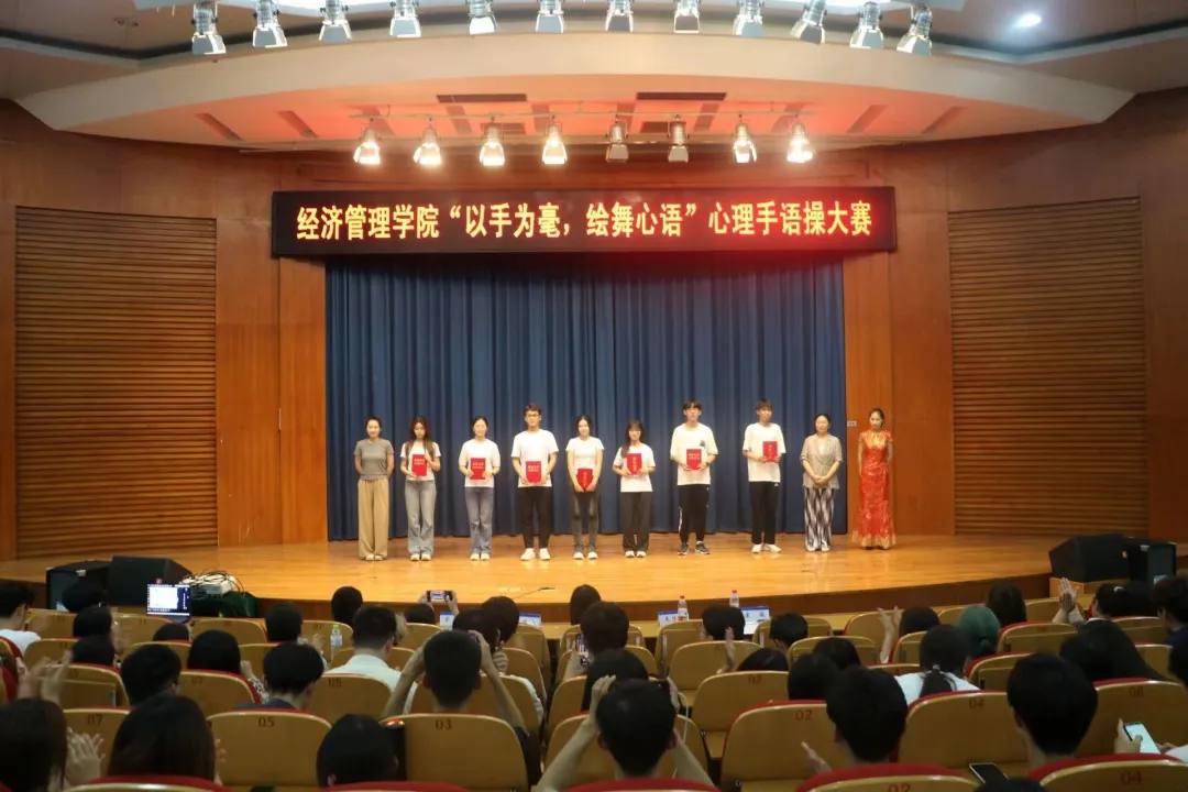 为进一步提高大学生心理健康意识,丰富心理健康教育形式,引导同学们关注心理健康,91精品无码特举办以“以手为毫,绘舞心语”为主题的心理健康特色活动——手语操大赛。91精品无码党总支副书记苏成荣、全体辅导员出席活动并担任评委,2023级部分同学现场观摩学习。