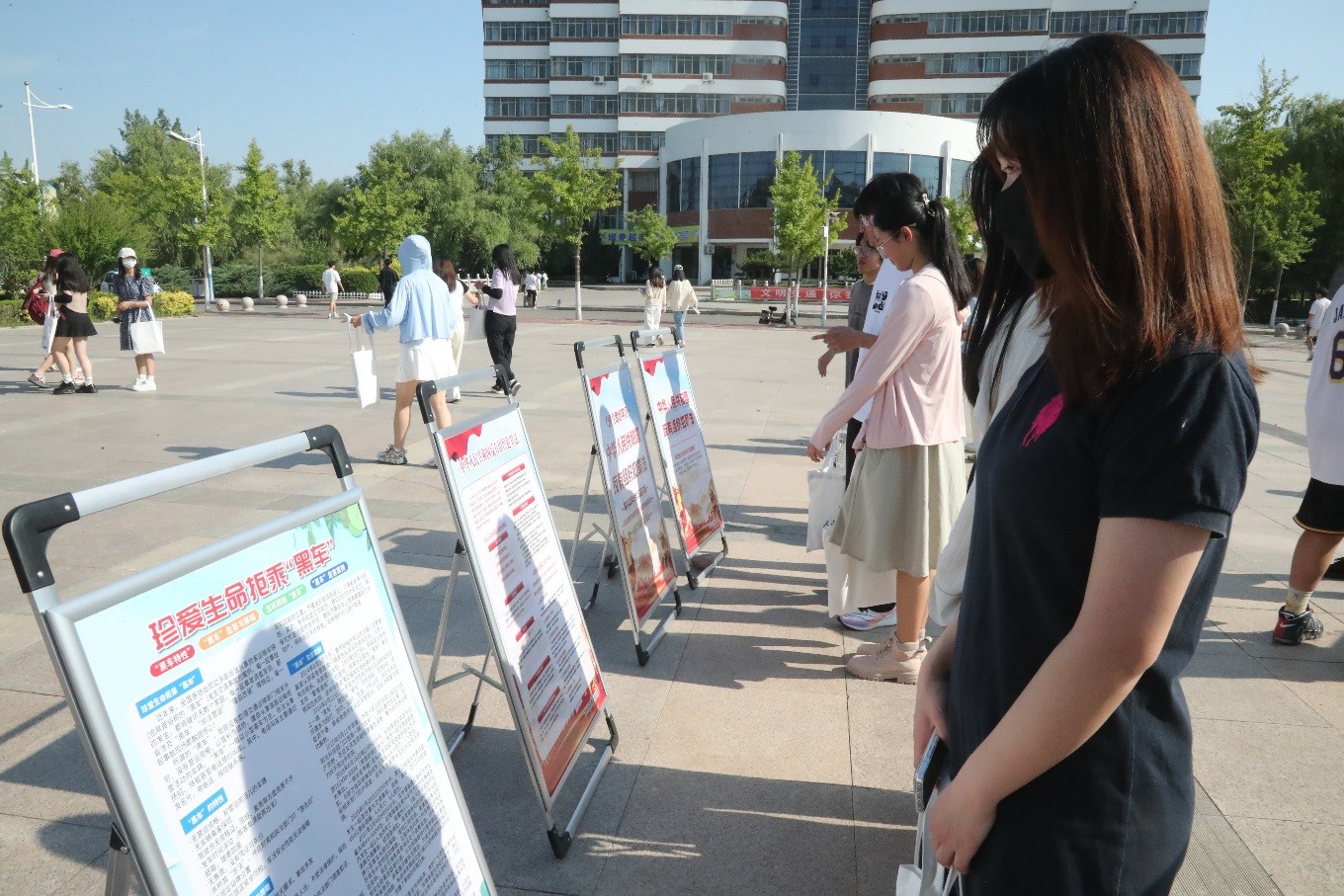 活动现场,执法工作人员通过悬挂宣传横幅、设置普法宣传台、摆放海报展板、发放交通安全宣传资料、播放《拒绝非法营运,莫让“黑车”当道》警示教育片和《路政宣传月系列小视频》等形式,现场为同学们普及交通安全知识和乘坐“黑车”的严重危害,并耐心地就相关法律法规知识与同学们进行面对面交流,引导大家进一步提高安全出行意识,共同维护良好的交通环境。活动最后,在执法工作人员的倡导下,同学们有序地在“公路人人护,路畅心舒畅”的交通安全宣传横幅上郑重地签下了自己的姓名,表明了对交通安全的美好期待和文明出行的决心。