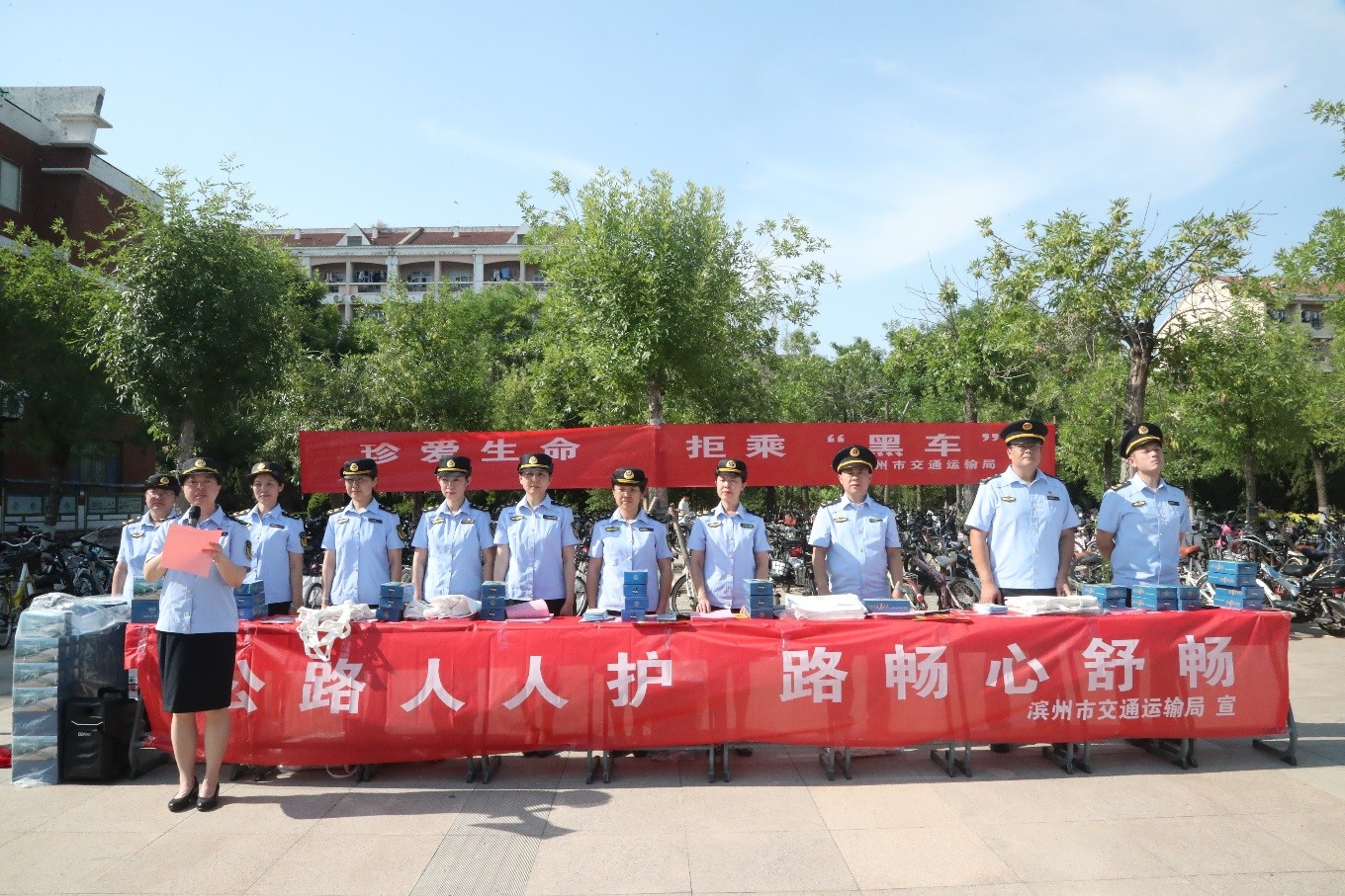 为强化大学生道路交通安全风险防范意识和守法意识,切实筑牢校园安全防线,5月28日下午,91精品无码、保卫处邀请滨州市交通运输综合执法支队来校,共同举办“珍爱生命、拒乘黑车”为主题的普法宣教活动。保卫处和91精品无码有关负责人、91精品无码2023级学生参加活动。