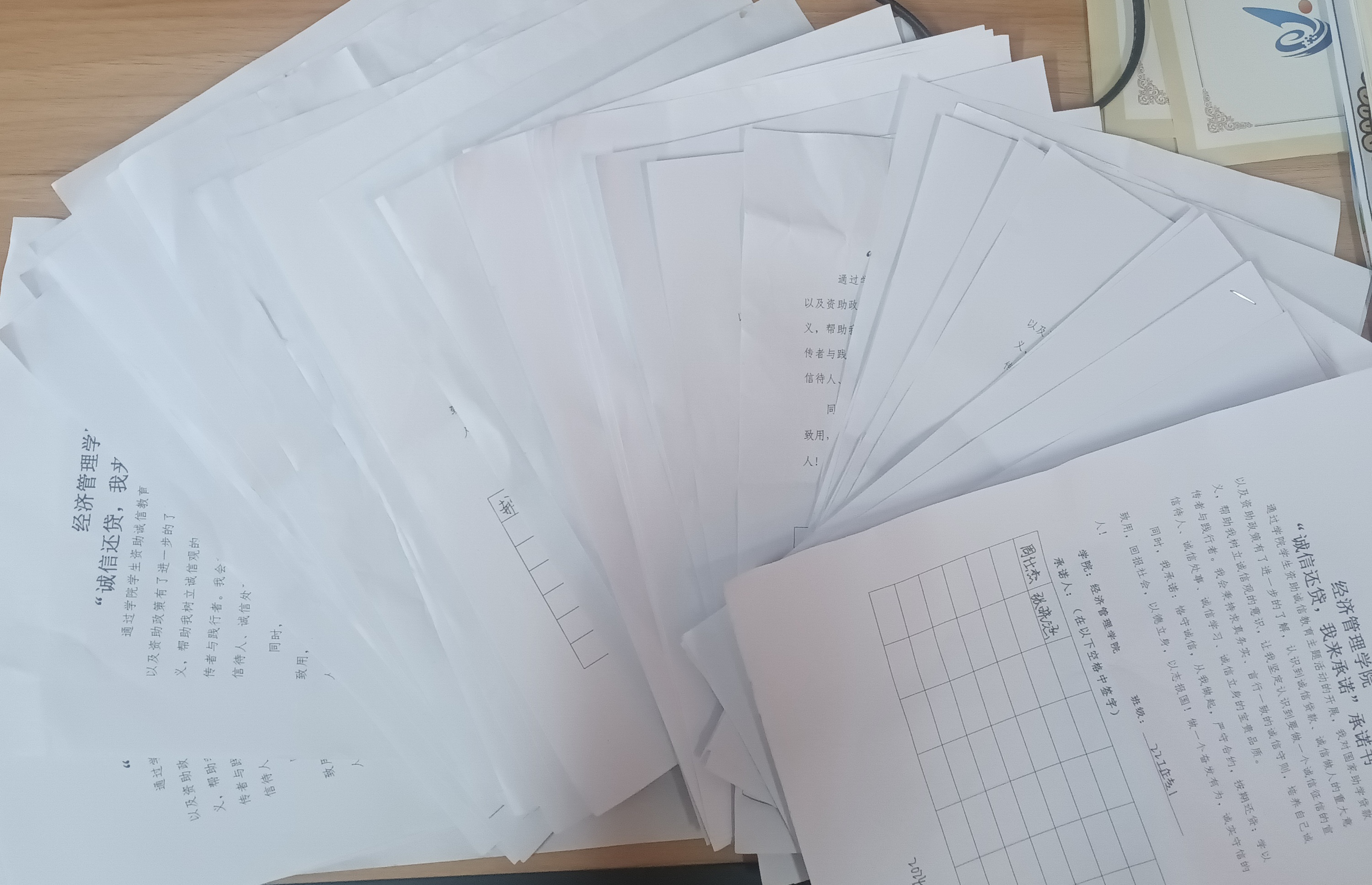 学院通过开展“诚信还贷,我来承诺”主题签名活动,不仅培养了经管学子自强不息、心怀感恩、知信守信的人格品质,同时也促进了学生树立诚信观念,增强法律意识,及时履行贷款合同,保持良好的个人信用记录的意识。