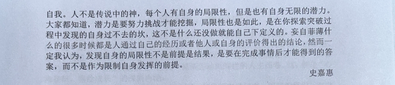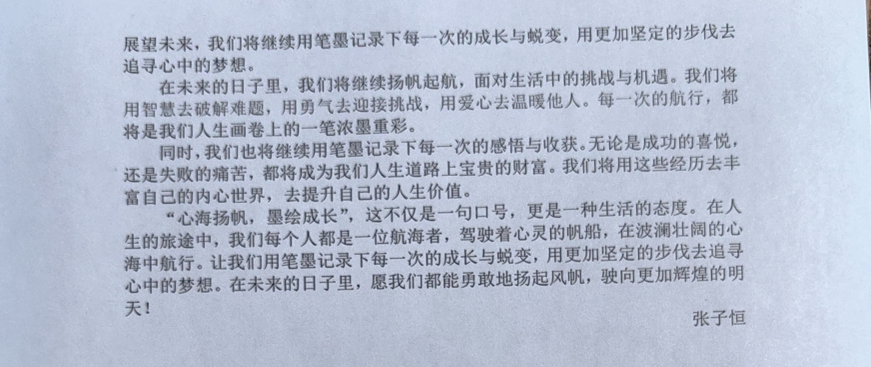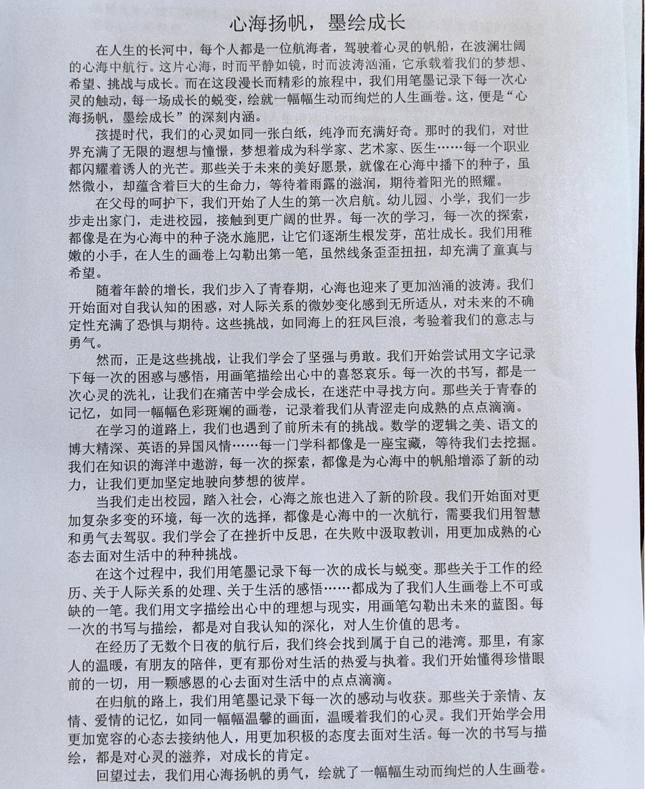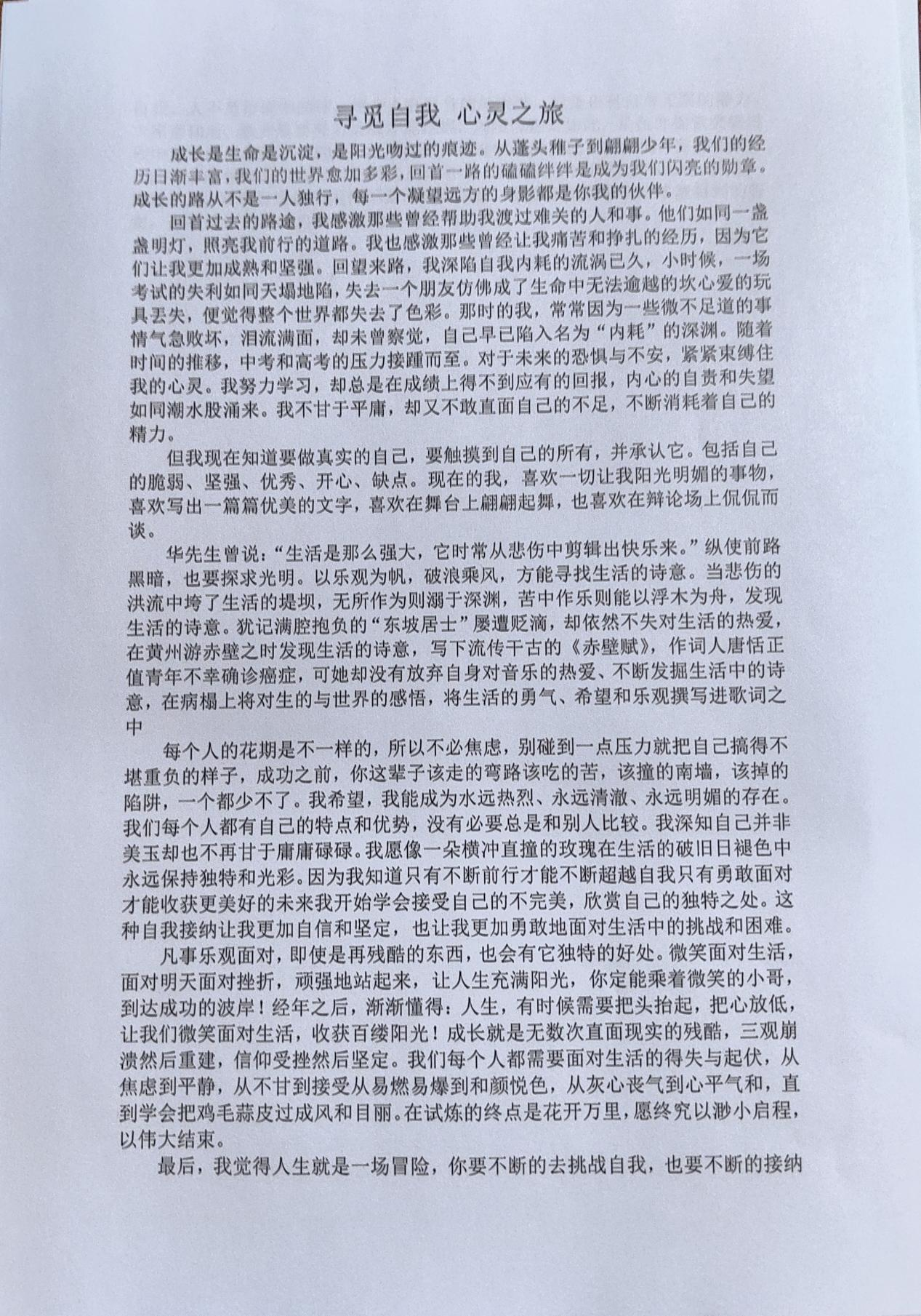 本次活动中,学生们踊跃参与,用文字展现了丰富的内心世界和乐观向上的精神风貌。学生们深入探索了成长道路上的苦与乐,每一次落笔都是一次内心的觉醒,一次与自我的深刻对话。这些作品描绘出一幅幅精彩的人生画卷,展现了学生们内心的坚韧与美好。