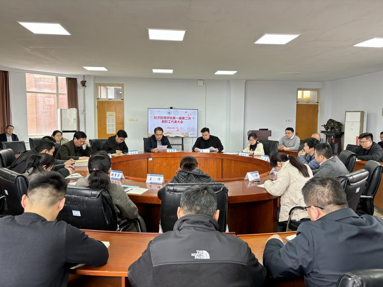 学院院长王春晖作了题为《同心同德干事创业 奋力开创学院事业发展新局面》的工作报告,全面回顾了2024年的各项工作,并对2025年工作进行了部署。报告指出2025年学院将迎来新一轮教育教学审核评估,首批数字经济硕士研究生招生培养,新一轮硕士学位点申报等重点任务,全院广大党员干部和师生员工要振奋精神、再接再厉,坚持目标导向、问题导向、结果导向,坚定“山再高,向上攀,总能登顶,路再长,走下去,总能到达”的必胜信心,以新担当、新作为交出满意的答卷。学院党委副书记苏成荣代表学院工会作了工会工作报告,从思想教育、作风引领、服务效力等方面进行了系统总结和展望。